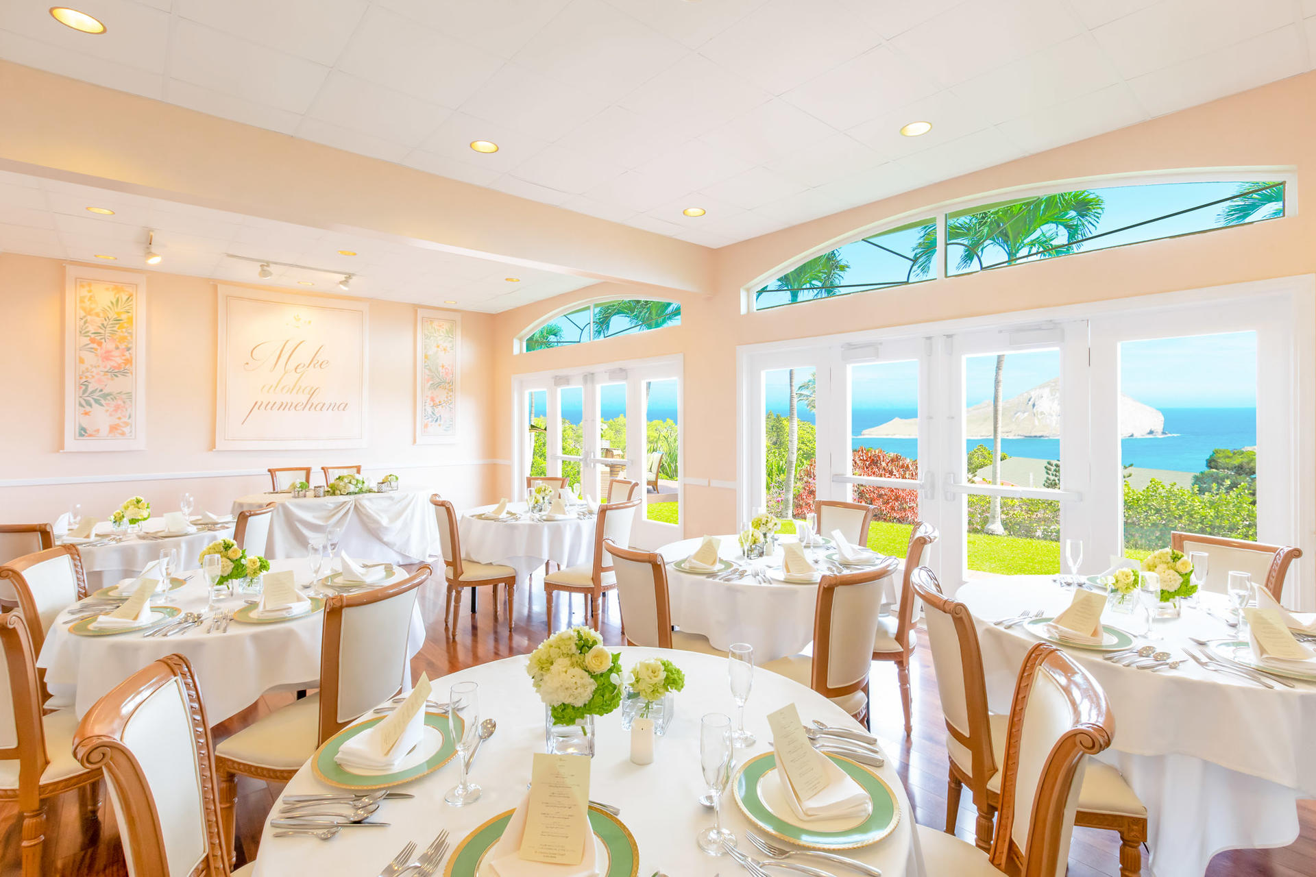 최대 17명까지 수용이 가능한 스몰룸과 30명까지 수용이 가능한 라지룸이 있어서 하객수에 따라 선택하실 수 있어요. 음식도 세트메뉴로 구성이 되어 있어 편하게 고르기만 하면 되고요. 두 룸 모두 오션뷰를 보시면서 식사를 할 수 있어서 더욱 좋죠.